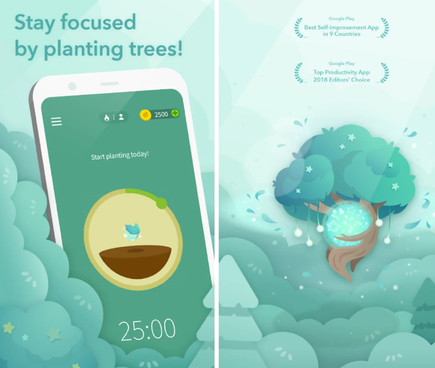 - During this time, users plant a virtual tree. The tree will die if the user abandons the task while using their phone.