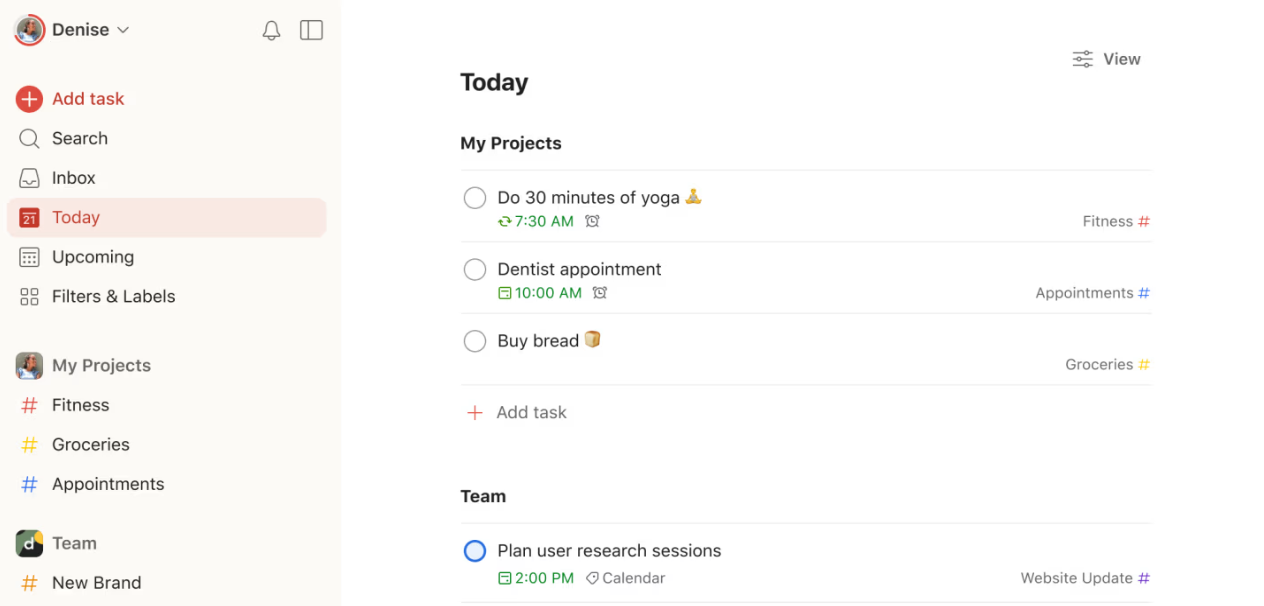 - It allows you to create tasks and projects with due dates, labels, and priorities.