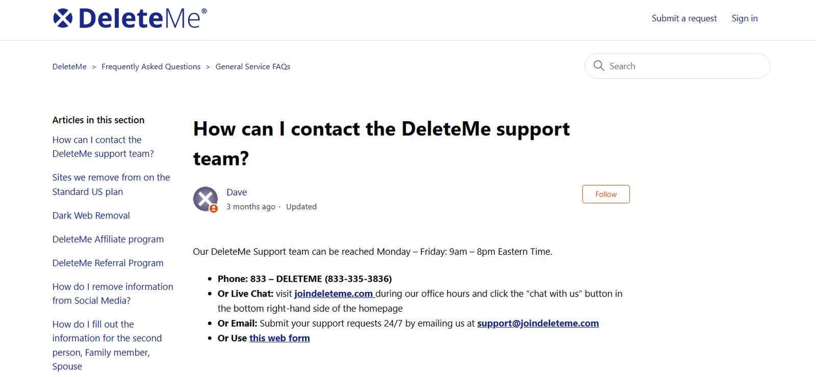 Contact the DeleteMe customer support team for further information on plans and pricing, or to learn more about additional DeleteMe services.