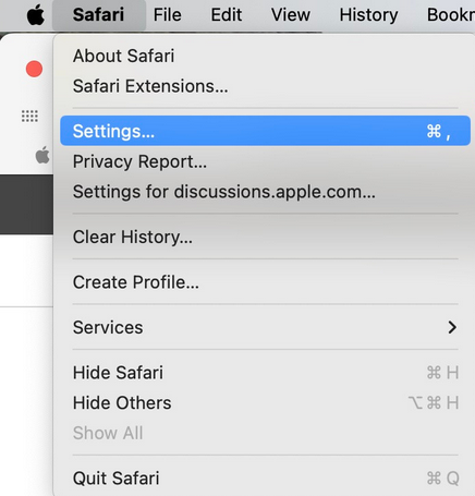 2. Access Safari preferences by clicking on the menu bar at the top of the screen.
