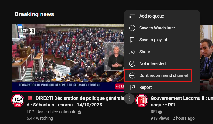 Use the “Don’t Recommend Channel” Feature