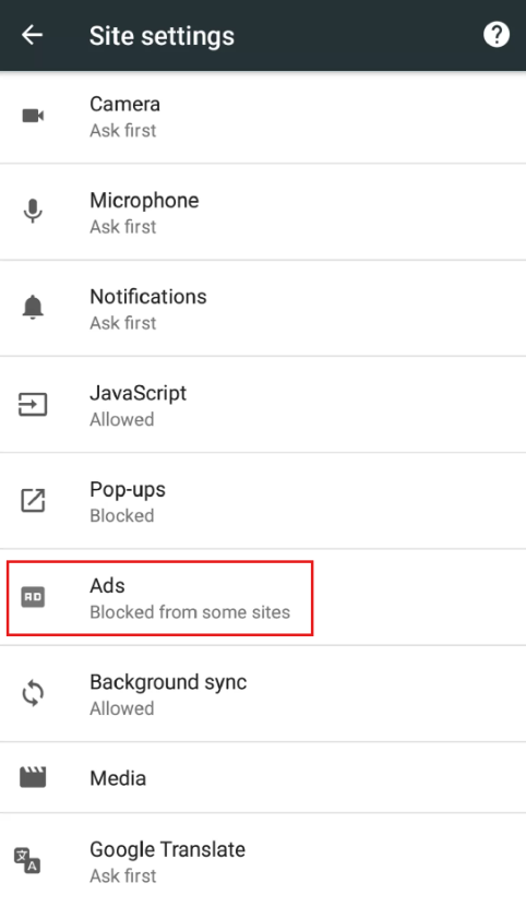 You can block some ads in Chrome for Android using the built-in pop-up blocker feature. Go to Settings, Site Settings, Ads, and enable the "Block ads on sites that display intrusive ads" option.