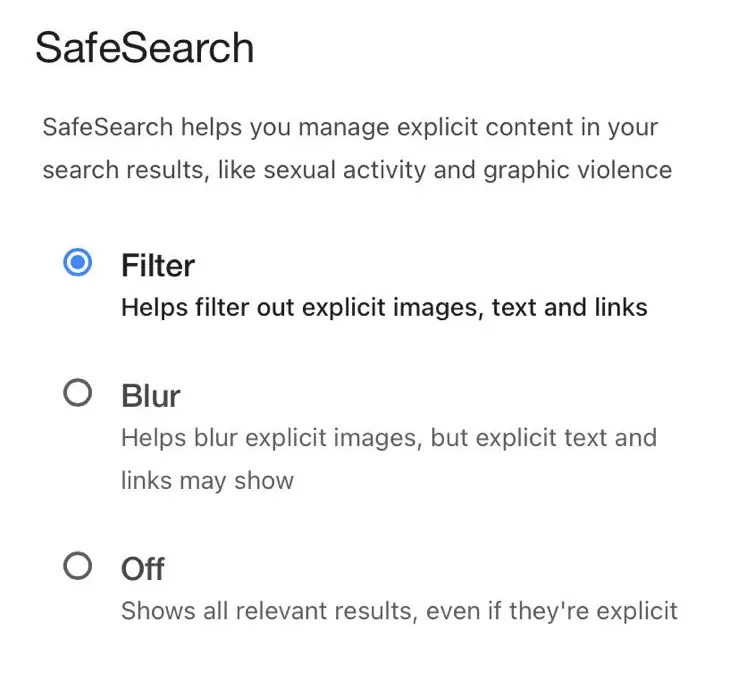 SafeSearch can be enabled from your browser settings whether you use desktop or mobile. Go to the Google settings on the settings page and allow SafeSearch to apply search filters.