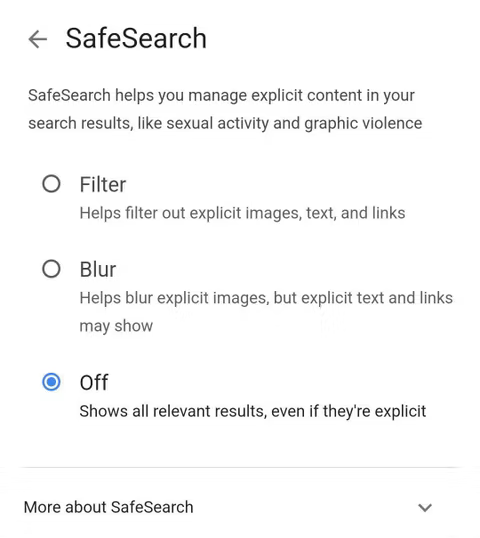 Enable SafeSearch by allowing search filters in Google settings on Android mobile and by following these steps:
