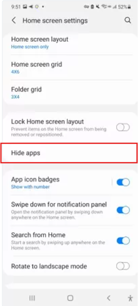 - Scroll down and select Apps and go to Hide Apps on Home and Apps screens.