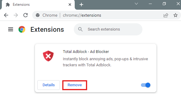 Since Total Adblock is an extension, you must remove it from your extensions list after cancellation and receiving your refund. If you want to remove Total Adblock using Chrome, go to the Extensions page by entering chrome://extensions in a new tab. For example, you can type and access edge: // extensions using Edge. If you can not access your extension lists this way, you can search for them on "Settings," located to the right of your browser address bar.