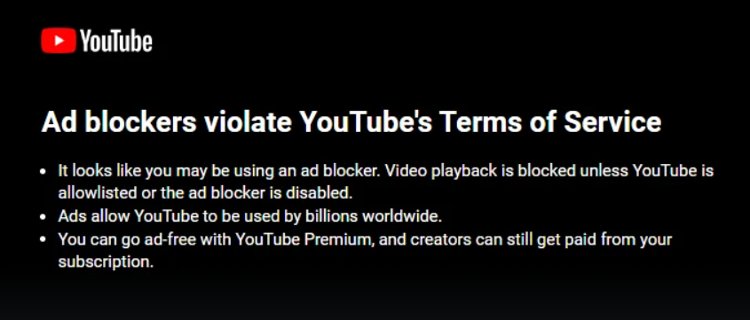 However, as developers adapted to these new measures, YouTube escalated its tactics, significantly affecting users' viewing experiences and ad-blocking companies. On the one hand, as stated in its Enforcement on Third Party Apps announcement, the platform reiterates that using an ad blocker violates YouTube's terms of service and informs users that they may experience buffering issues when using an adblocker.