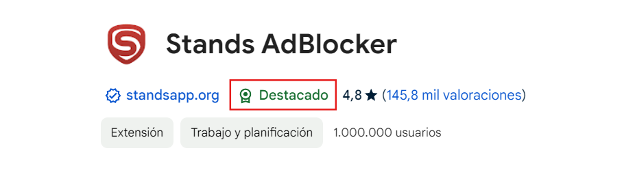 - Elige Stands AdBlocker, tu bloqueador de anuncios gratuito para Chrome.