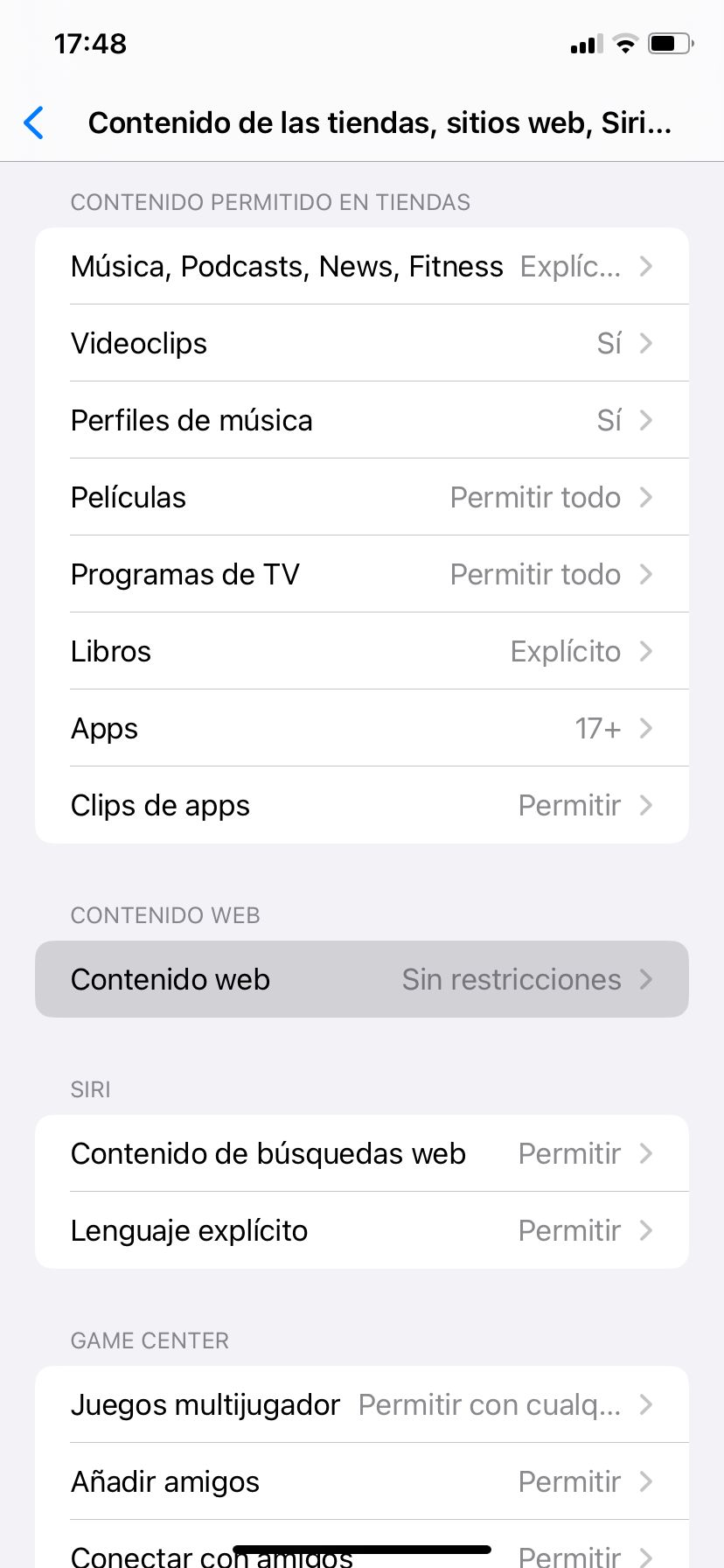 6. Selecciona Limitar webs para adultos.