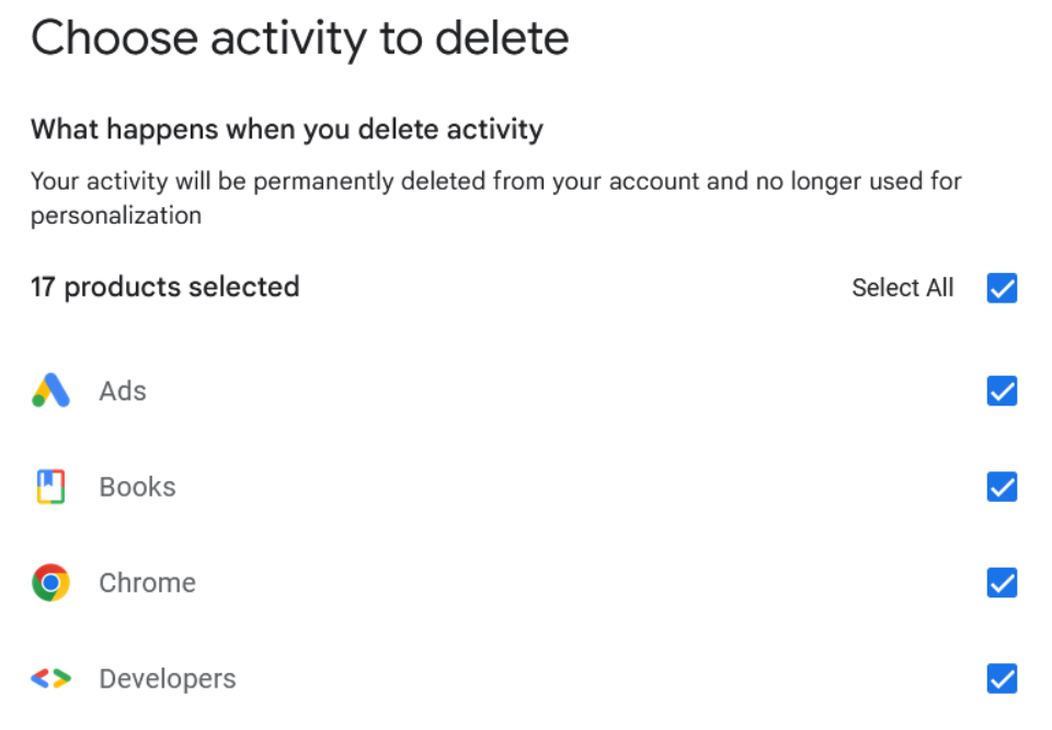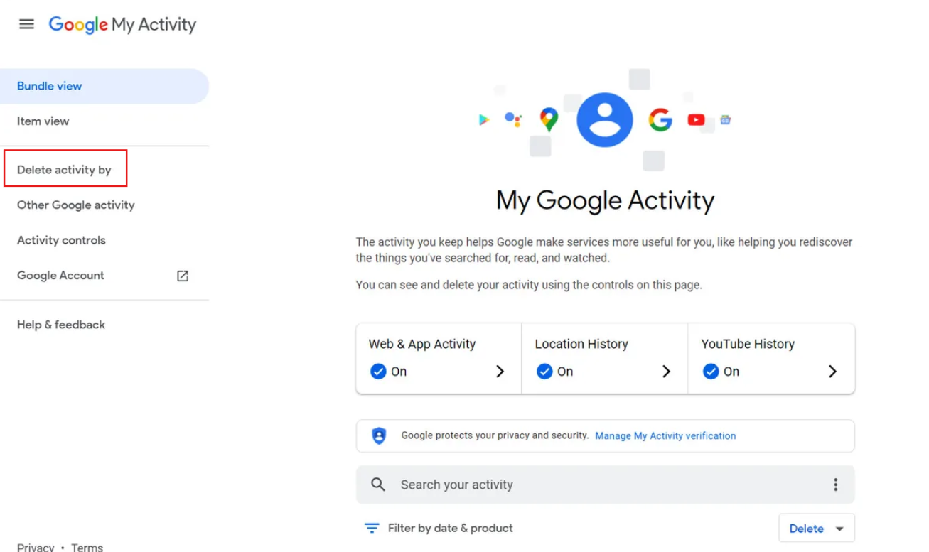 - Debajo de "Actividad en la Web y en Aplicaciones", busca la sección Eliminación automática.