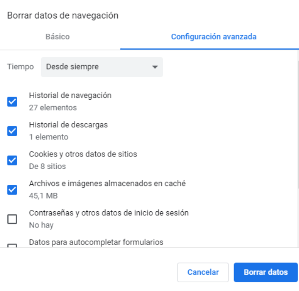 El historial del navegador es la lista de sitios que visitaste usando Chrome. La caché almacena estos archivos temporales para acelerar la carga de páginas y sitios que has visitado anteriormente. Sin embargo, a medida que tu navegador almacena más caché y cookies, este puede ralentizarse. Por esta razón limpiar la caché y las cookies puede resolver el problema de Chrome siendo lento.