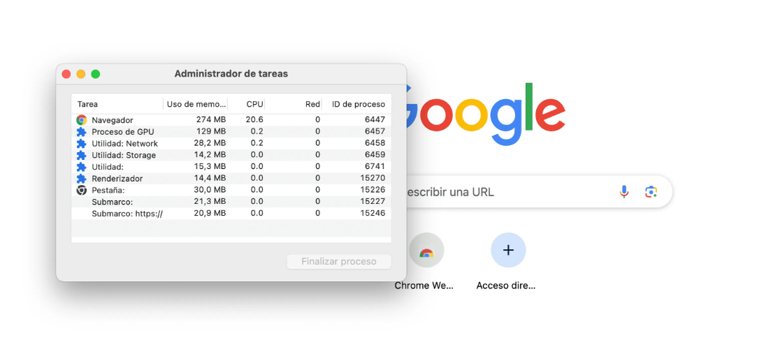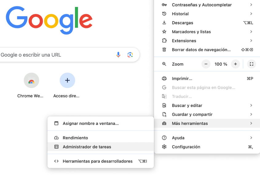 Para acceder al Administrador de tareas de Chrome: